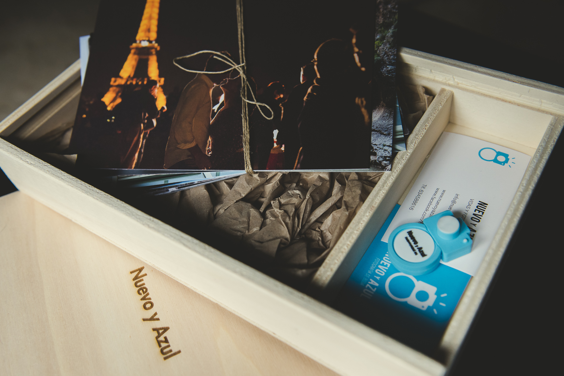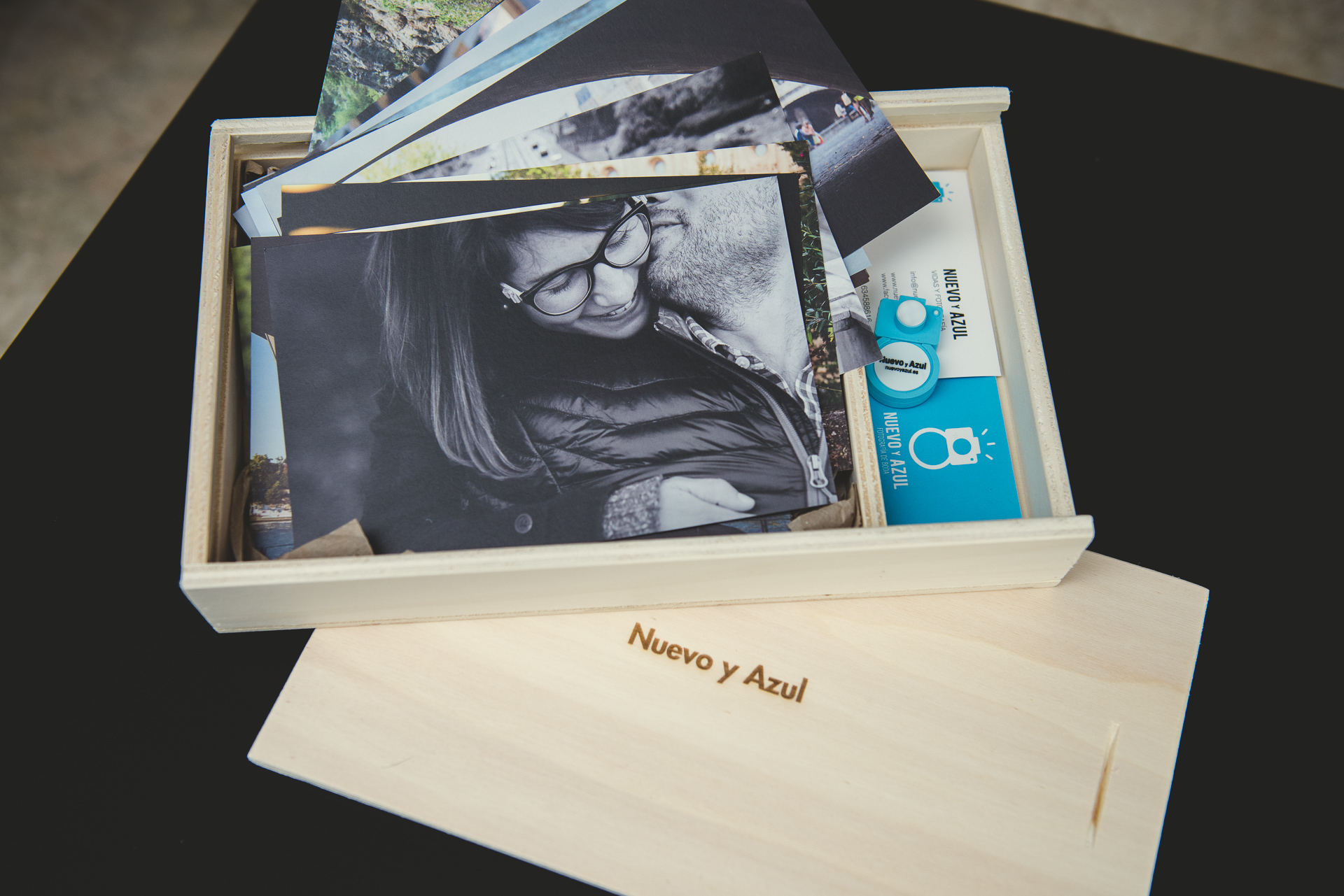 La “capsula del tiempo” que guarde tan preciado tesoro merece toda nuestra atención. Solo un dispositivo USB de memoria, exclusivo, personalizado con nuestra imagen, que respete y sea coherente con el mimo y la atención que ponemos en cada cosa hacemos es digno de albergar vuestro tesoro”, y nuestro esfuerzo, poniendo un broche final de calidad a un trabajo en el que volcamos el corazón. Una caja de madera será la encargada de cobijar, junto a 20 fotografías impresas en técnica “fine art” vuestro pendrive. Un gran continente para el mejor contenido.